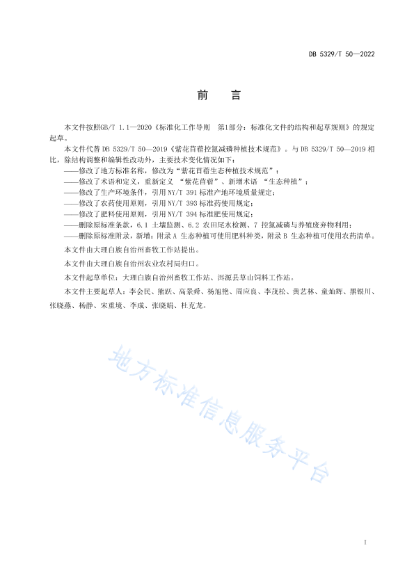 本文件按照GB/T 1.1—2020《标准化工作导则 第1部分:标准化文件的结构和起草规则》的规定起草。 本文件由大理白族自治州畜牧工作站提出。 本文件由大理白族自治州农业农村局归口。 本文件起草单位:大理白族自治州畜牧工作站、洱源县草山饲料工作站。