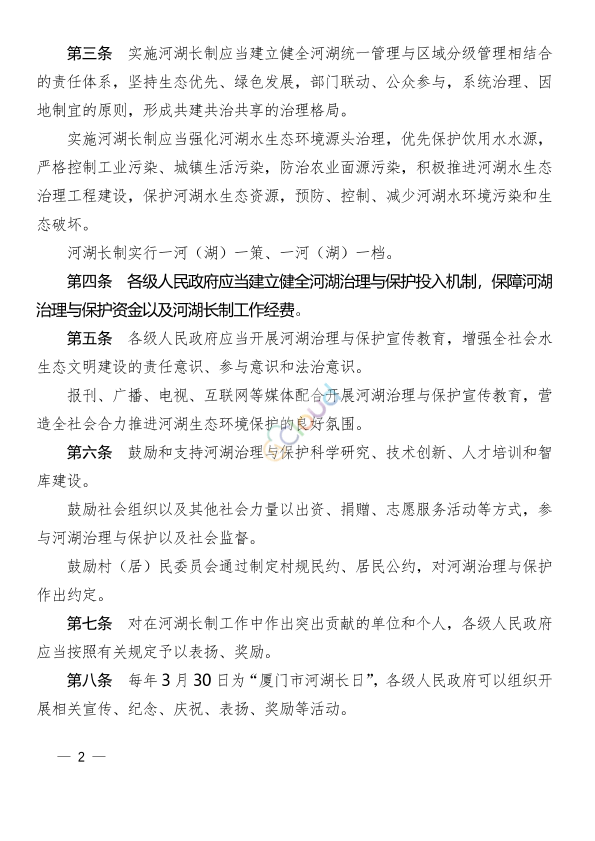 为了保障河湖长制有效实施,加强河湖治理与保护,健全河湖治理与保护长效机制,推进生态文明建设,遵循有关法律、行政法规的基本原则,结合厦门经济特区实际,制定本条例。