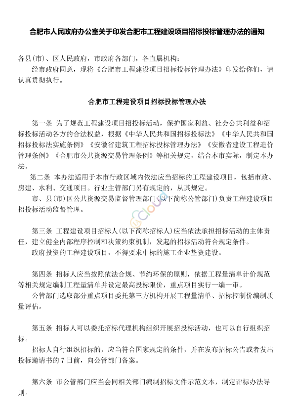 为了规范工程建设项目招投标活动,保护国家利益、社会公共利益和招标投标活动各方的合法权益,根据《中华人民共和国招标投标法》《中华人民共和国招标投标法实施条例》《安徽省建筑工程招标投标管理办法》《安徽省建设工程造价管理条例》《合肥市公共资源交易管理条例》等相关规定,结合本市实际,制定本办法。