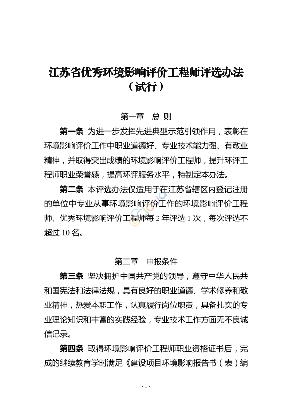 各有关单位: 为进一步发挥先进典型示范引领作用,提升环境影响评价工程师的职业荣誉感,推动环评从业人员提升技术能力和服务水平,我会制定了《江苏省优秀环境影响评价工程师评选办法(试行)》,并经协会第七届理事会第五次会议审议通过,现印发给你们。 附件:《江苏省优秀环境影响评价工程师评选办法(试行)》 江苏省环境保护产业协会 2024年5月9日