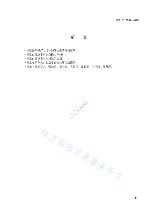 本标准按照GB/T 1.1—2009给出的规则起草。 本标准由北京市农业局提出并归口。 本标准由北京市农业局组织实施。 本标准起草单位:北京市畜牧业环境监测站。 本标准主要起草人:张加勇、王全红、直俊强、张建淼、王重庆、郭海涛。