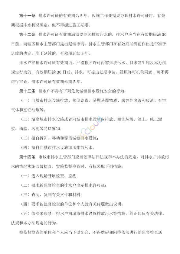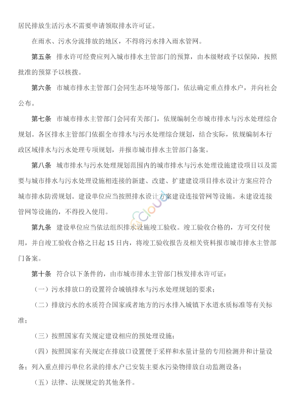 核心目的:规范污水排入城市排水管网的管理,保障排水设施安全运行,防治水污染。