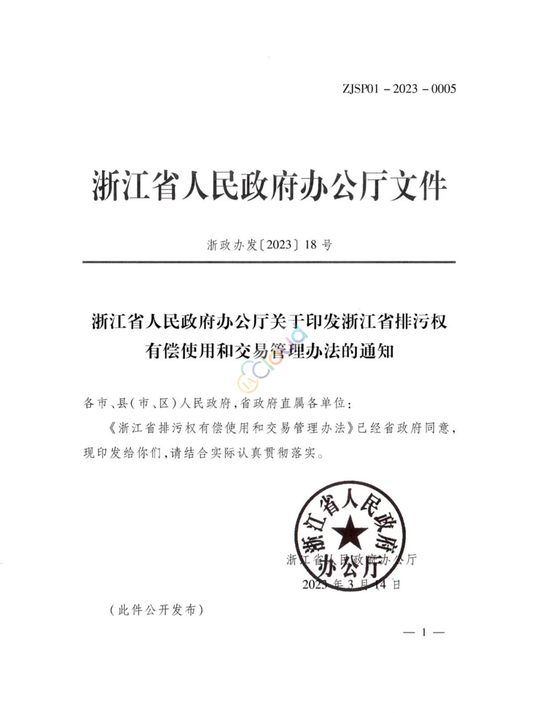 各市、县(市、区)人民政府﹐省政府直属各单位: 《浙江省排污权有偿使用和交易管理办法》已经省政府同意,现印发给你们,请结合实际认真贯彻落实。 浙江省人民政府办公厅 2023年3月14日