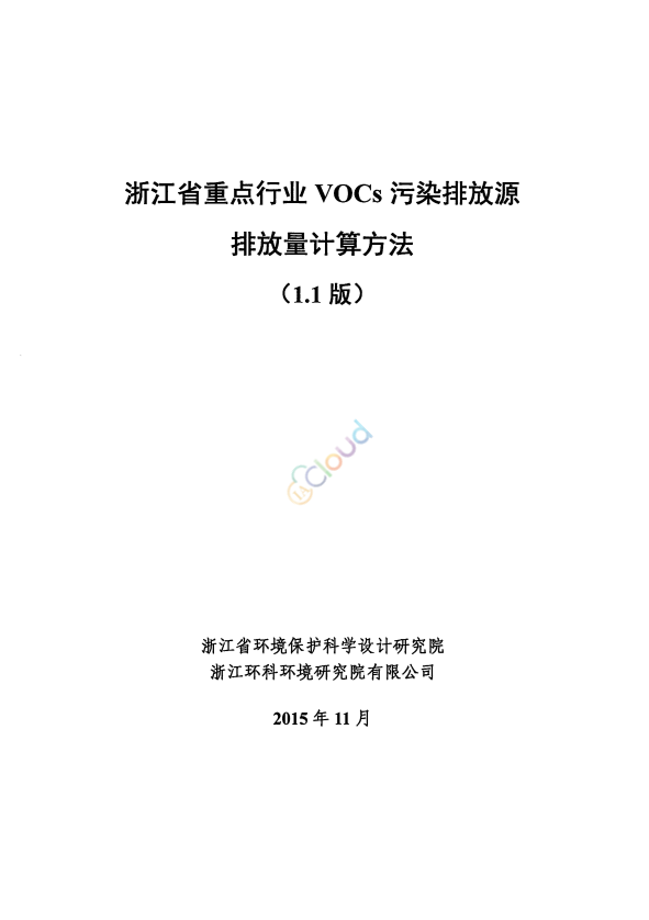 浙江省重点行业VOCs污染排放源排放量计算方法(1.1版)