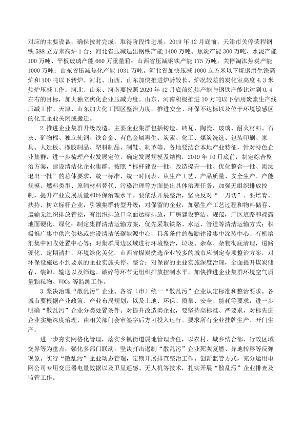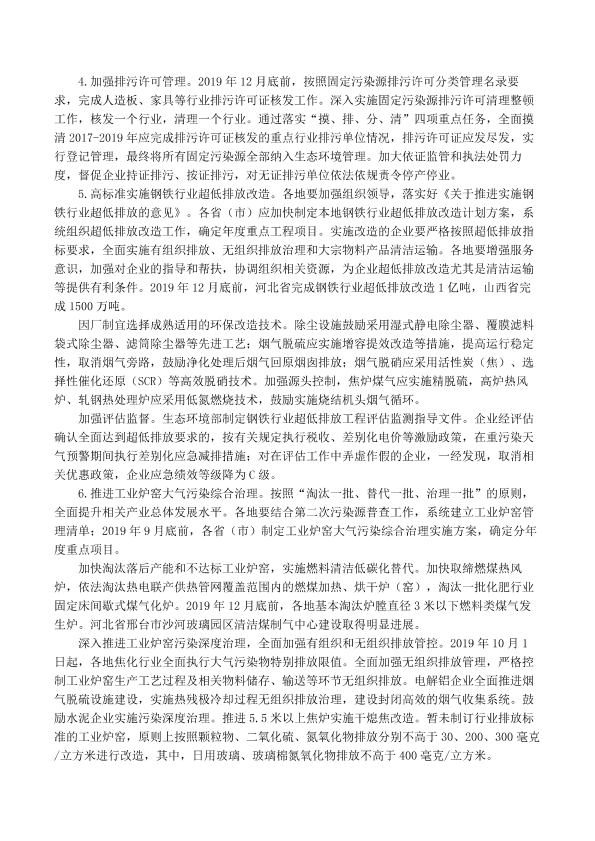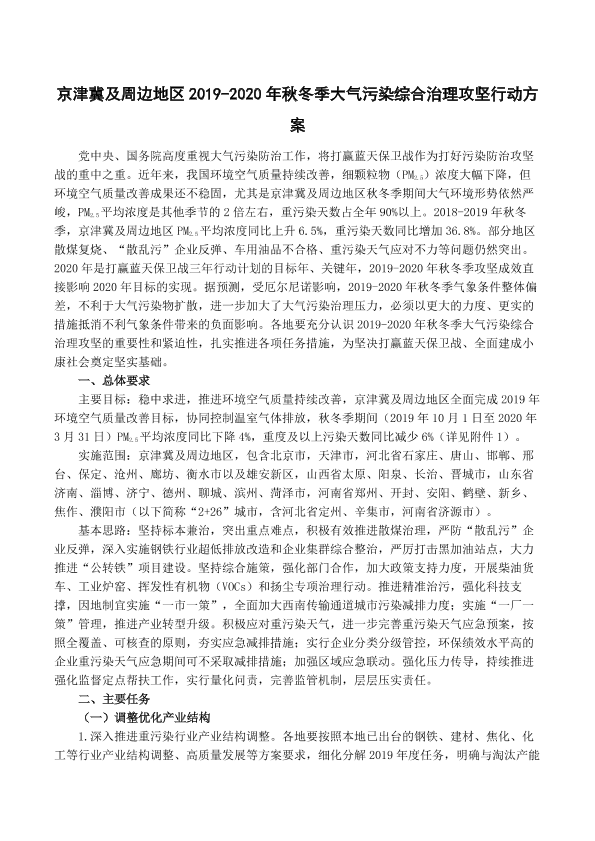 石家庄、唐山、邯郸、邢台、保定、沧州、廊坊、衡水、太原、阳泉、长治、晋城、济南、淄博、济宁、德州、聊城、滨州、菏泽、郑州、开封、安阳、鹤壁、新乡、焦作、濮阳市人民政府,雄安新区管理委员会,定州、辛集、济源市人民政府,中国石油天然气集团有限公司、中国石油化工集团有限公司、中国海洋石油集团有限公司、国家电网有限公司、中国国家铁路集团有限公司: 现将《京津冀及周边地区2019-2020年秋冬季大气污染综合治理攻坚行动方案》印发给你们,请遵照执行。 生态环境部 发展改革委 工业和信息化部 公安部 财政部 住房城乡建设部 交通运输部 商务部 市场监管总局 能源局 北京市人民政府 天津市人民政府 河北省人民政府 山西省人民政府 山东省人民政府 河南省人民政府 2019年9月25日
