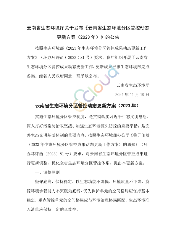 云南省生态环境厅关于发布《云南省生态环境分区管控动态更新方案(2023年)》的公告.pdf