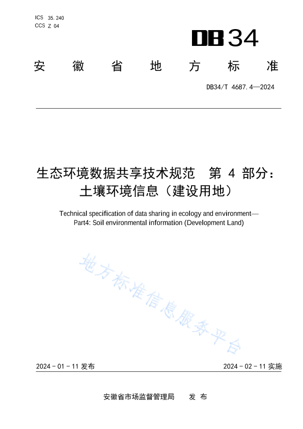 本文件按照GB/T 1.1—2020《标准化工作导则 第1部分:标准化文件的结构和起草规则》的规定起草。 本文件为 DB34/T 4687《生态环境数据共享技术规范》的第4部分。DB34/T 4687 已经发布了以下部分: ——第1部分:排污单位自动监测; ——第2部分:大气环境质量; ——第3部分:地表水环境质量; ——第4部分:土壤环境信息(建设用地)。 请注意本文件的某些内容可能涉及专利。本文件的发布机构不承担识别专利的责任。 本文件由安徽省生态环境厅提出并归口。 本文件起草单位:安徽省环境信中心、安徽省合肥生态环境监测中心、安徽省大数据中心、安徽省生态环境科学研究院。