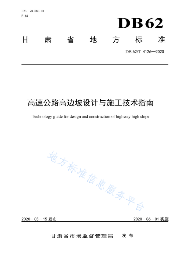 本指南规定了甘肃省高速公路高边坡勘察、设计和施工的指导性技术要求。 本指南适用于甘肃省高速公路高边坡的勘察、设计和施I,其它等级公路及市政道路工程可参照执行。