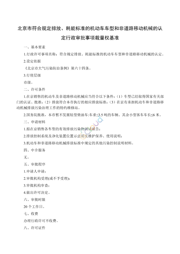 各有关单位: 为深入贯彻落实《国务院办公厅关于进一步规范行政裁量权基准制定和管理工作的意见》(国办发〔2022〕27号)和市推进依法行政工作领导小组《关于进一步规范行政裁量权基准制定和管理工作的实施意见》(京依法行政办发〔2023〕4号),规范实施行政许可裁量权基准制度,根据《北京市大气污染防治条例》等法律法规,并结合本市机动车和非道路移动机械监管工作实际,市生态环境局研究制定了《北京市符合规定排放、耗能标准的机动车车型和非道路移动机械的认定行政审批事项裁量权基准》,现予以印发。 一、凡申报北京市“符合规定排放、耗能标准的机动车车型和非道路移动机械的认定”的企业或申请人,可自行开展有效排放污染物测试,也可委托经过国家有关部门资质认可的检测单位进行测试。对于选择自行开展有效排放污染物测试的企业或申请人,应参考国家有关部门资质认可的检测单位的检测报告格式,出具检测报告,并加盖单位电子签章。 二、在本市销售机动车和非道路移动机械的生产企业,需按照相关标准要求做好排放自查工作,确保批量生产机动车和非道路移动机械排放稳定达标。市生态环境局将进一步加大机动车和非道路移动机械排放抽查力度,对于不达标车(机)型,将依法予以处罚。 三、本通知自印发之日起执行,《北京市环境保护局关于进一步规范符合规定排放耗能标准机动车车型和非道路移动机械认定行政审批服务事项的通知》(京环发〔2017〕19号)同时废止。 特此通知。 北京市生态环境局 2023年11月23日