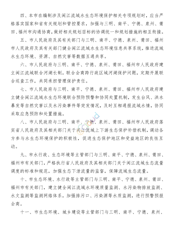 为了深入贯彻习近平生态文明思想,保护和改善闽江流域水生态环境,推进流域水生态环境跨行政区域协同保护,深化国家生态文明试验区建设,根据《中华人民共和国水法》《中华人民共和国水污染防治法》等有关法律法规,结合本市实际,作如下决定: