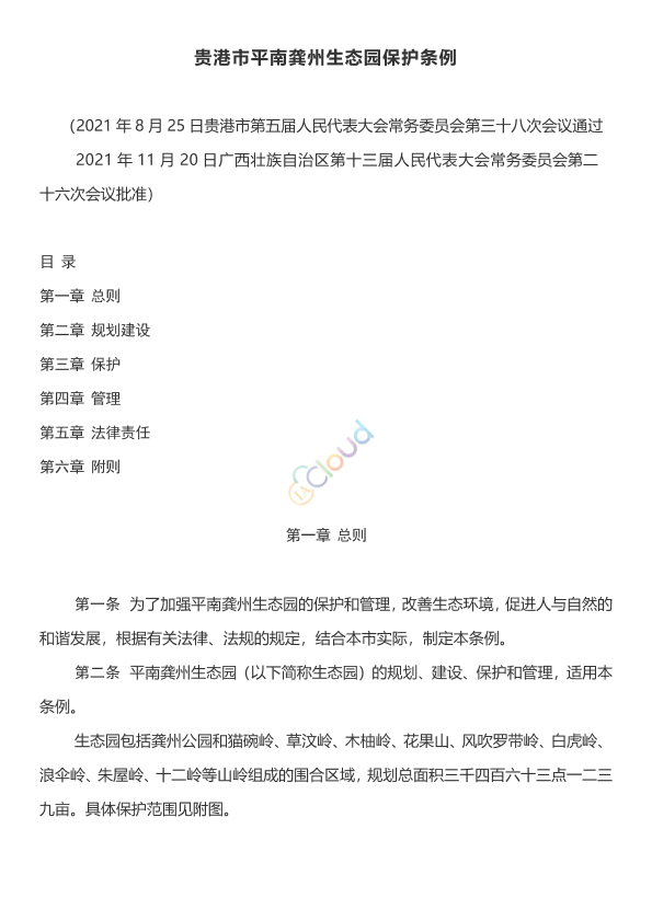 为了加强平南龚州生态园的保护和管理,改善生态环境,促进人与自然的和谐发展,根据有关法律、法规的规定,结合本市实际,制定本条例。