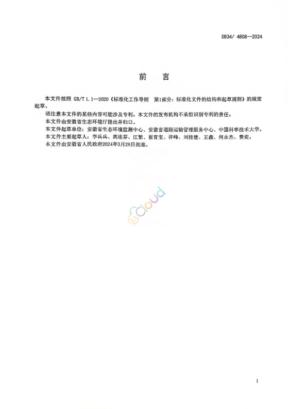 本文件按照GB/T 1.1—2020《标准化工作导则第1部分:标准化文件的结构和起草规则》的规定起草。 请注意本文件的某些内容可能涉及专利。本文件的发布机构不承担识别专利的责任。 本文件由安徽省生态环境厅提出并归口。