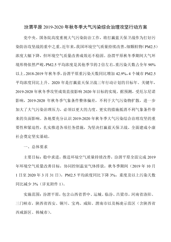 晋中、运城、临汾、吕梁、洛阳、三门峡、西安、铜川、宝鸡、咸阳、渭南市人民政府,杨凌示范区管委会,西咸新区管委会,韩城市人民政府,中国石油天然气集团有限公司、中国石油化工集团有限公司、中国海洋石油集团有限公司、国家电网有限公司、中国国家铁路集团有限公司: 现将《汾渭平原2019-2020年秋冬季大气污染综合治理攻坚行动方案》印发给你们,请遵照执行。 生态环境部 发展改革委 工业和信息化部 公安部 财政部 住房城乡建设部 交通运输部 商务部 市场监管总局 能源局 山西省人民政府 河南省人民政府 陕西省人民政府 2019年11月4日