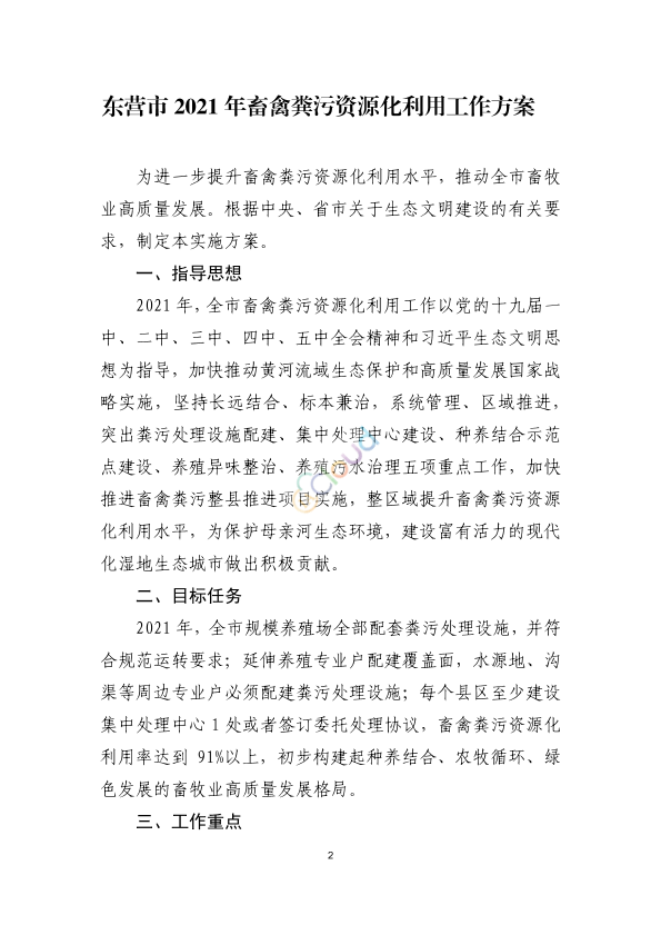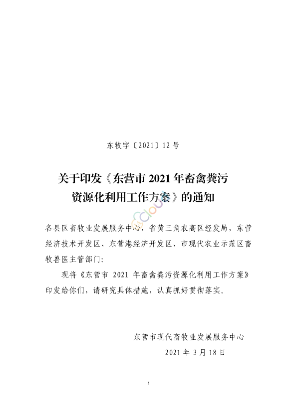 各县区畜牧业发展服务中心,省黄三角农高区经发局,东营经济技术开发区、东营港经济开发区、市现代农业示范区畜牧兽医主管部门: 现将《东营市2021年畜禽粪污资源化利用工作方案》印发给你们,请研究具体措施,认真抓好贯彻落实。 东营市现代畜牧业发展服务中心 2021年3月18日