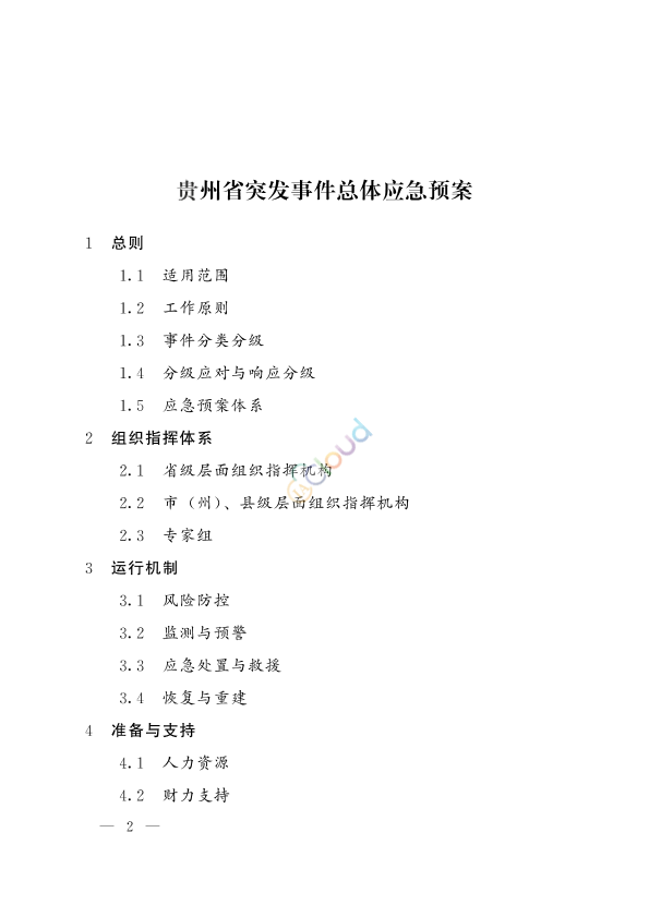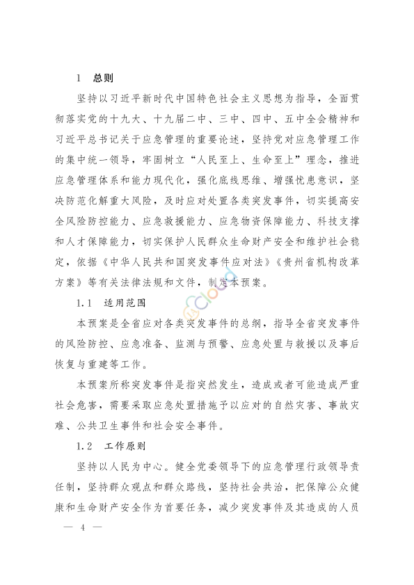 贵州省突发事件总体应急预案
