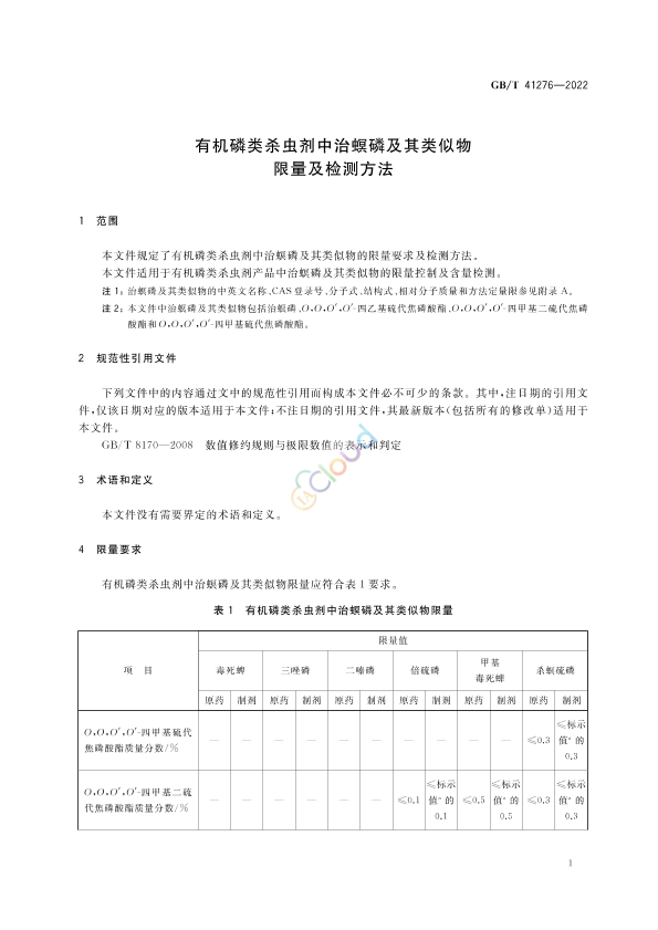 本文件规定了有机磷类杀虫剂中治犋磷及其类似物的限量要求及检测方法。 本文件适用于有机磷类杀虫剂产品中治犋磷及其类似物的限量控制及含量检测。 注1:治暝磷及其类似物的中英文名称.CAS登录号、分子式、结构式、相对分子质量和方法定量限参见附录A。 注2:本文件中治螟磷及其类似物包括治螟磷、O,O,O' ,O'-四乙基硫代焦磷酸酯.O,0,0' ,O'-四甲基二硫代焦磷酸酯和O,O,O',O'-四甲基藐代焦磷酸酯。