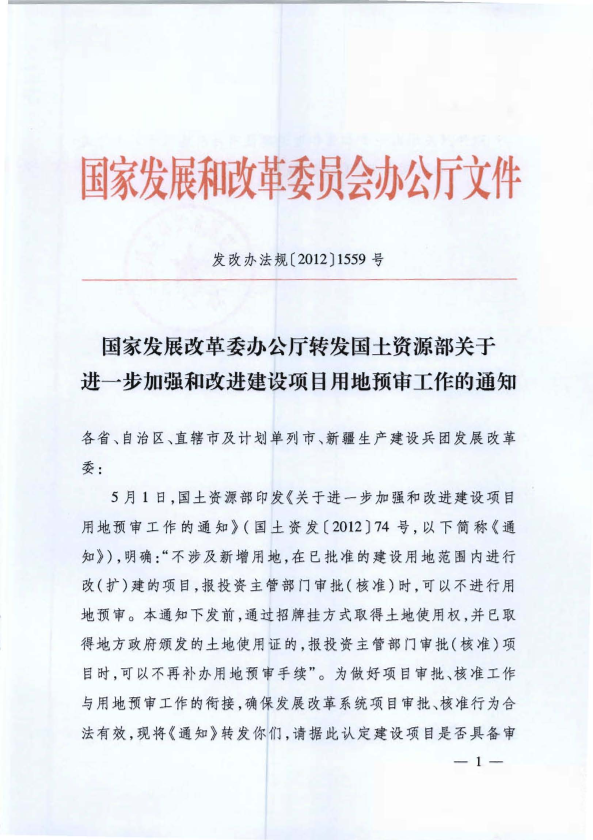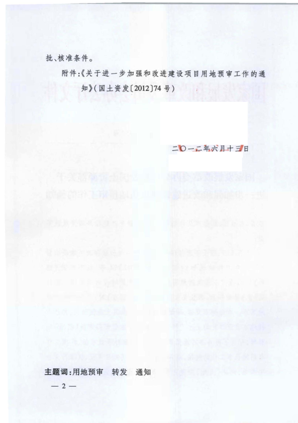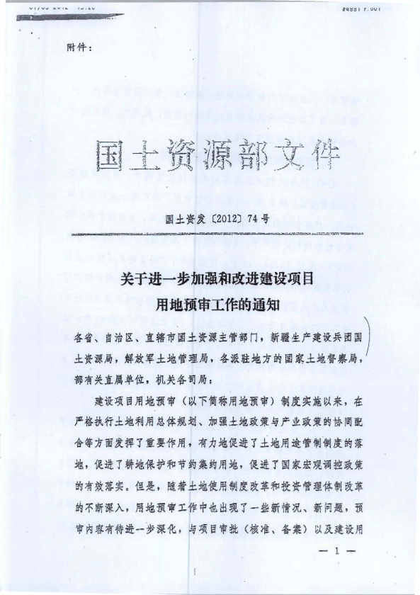 用地预审工作的通知>> (国土资发 (2012J74 号,以下简称《通