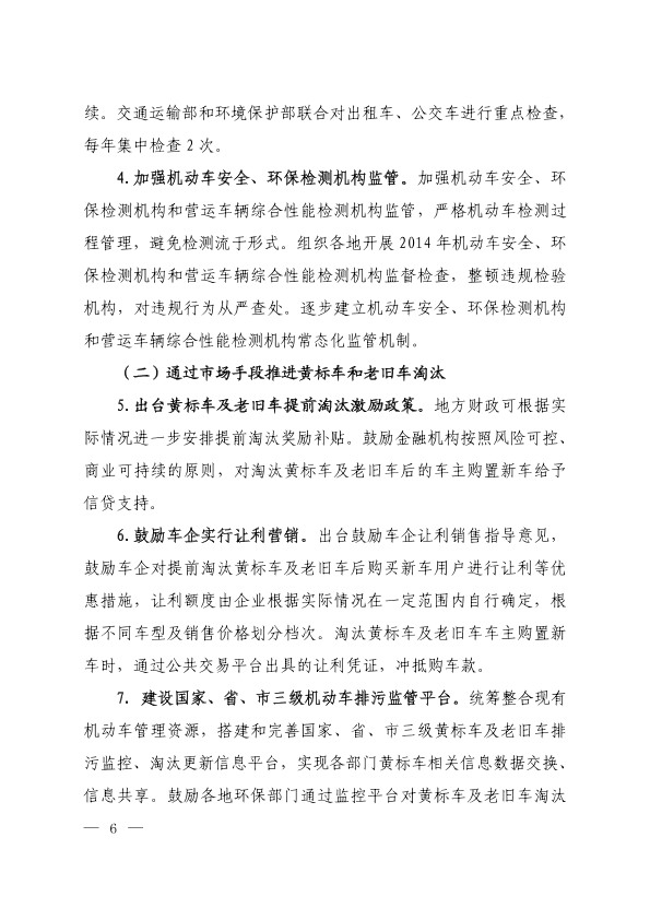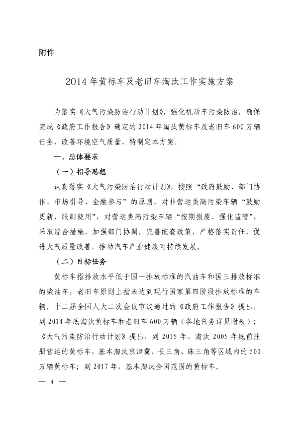 环境保护部等六部委联合印发《2014年黄标车及老旧车淘汰工作实施方案》