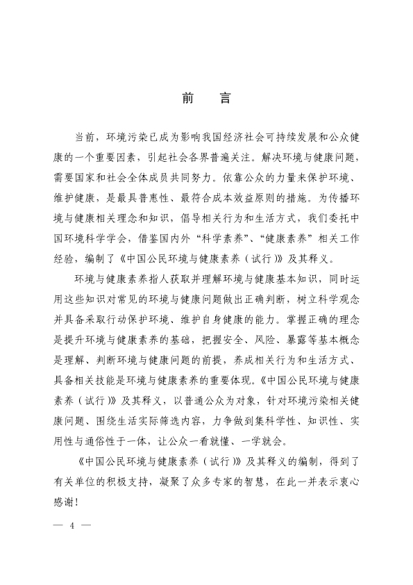 根据《国家环境与健康行动计划》(2007-2015),为界定我国公民环境与健康素养基本内容,普及现阶段公民应具备的环境与健康基本理念、知识和技能,促进社会共同推进国家环境与健康工作,我部委托中国环境科学学会,组织有关专家编制了《中国公民环境与健康素养(试行)》,现予发布。