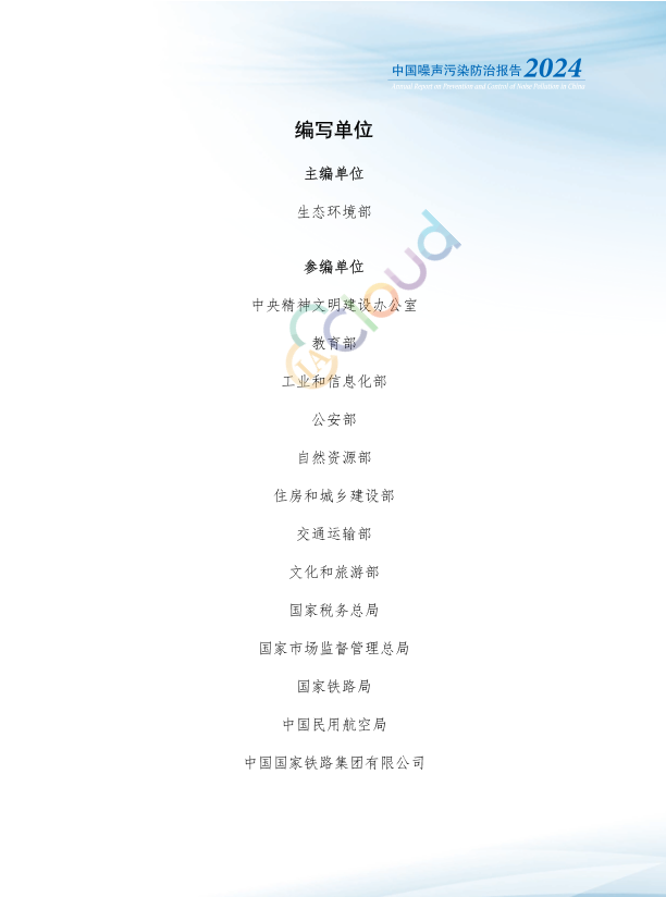 近年来,我国城市建设快速发展,人口密度逐步增大,机动车保有量日益增加,工业、商业、建筑施工等活动越来越频繁,导致噪声源不断增多。另一方面,噪声污染防治宣传不够,公众宁静共识有待加强,文娱活动音量过大、“飙车炸街”等行为时有发生。与此同时,随着蓝天、碧水、净土保卫战取得显著成效,人民群众对生态环境质量的期望越来越高,对生态环境问题的容忍度越来越低,噪声污染问题逐渐成为生态环境质量和城乡人居环境的短板。解决噪声污染问题需要充分发挥多元社会力量,建立政府主导、部门协同、企业主体、社会组织和公众共同参与的噪声污染治理体系。 2023 年,习近平总书记在全国生态环境保护大会上强调,要下大气力解决老百姓“家门口”的噪声、油烟、恶臭等问题,积极回应人民群众关切。各级人民政府各部门积极采取措施,不断加大噪声污染防治力度,着力解决好人民群众急难愁盼问题。为客观反映当前我国噪声污染状况,总结 2023年噪声污染防治工作情况,编制本报告。 本报告由生态环境部会同中央精神文明建设办公室、教育部、工业和信息化部、公安部、自然资源部、住房和城乡建设部、交通运输部、文化和旅游部、国家税务总局、国家市场监督管理总局、国家铁路局、中国民用航空局和中国国家铁路集团有限公司共同编制,以全国31个省(自治区、直辖市)及新疆生产建设兵团生态环境部门报送的噪声污染防治工作总结数据为主,同时吸收相关部门和单位噪声污染防治工作内容。其中,相关部门和单位提供的工作内容和数据均在文中备注说明。本报告涉及的全国性数据均未包括香港特别行政区、澳门特别行政区和台湾省数据。