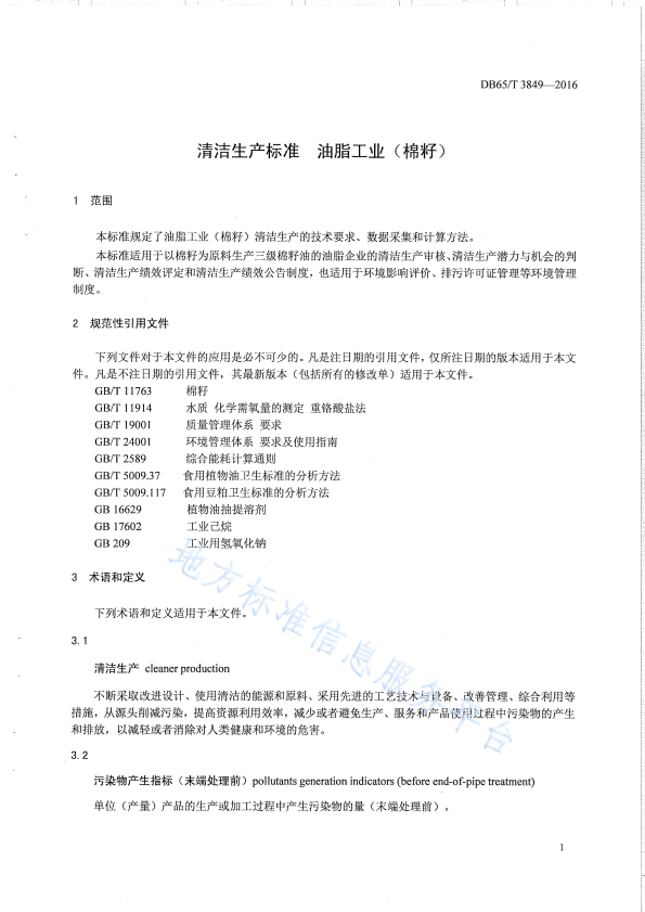 本标准规定了油脂工业(棉籽)清洁生产的技术要求、数据采集和计算方法。 本标准适用于以棉籽为原料生产三级棉籽油的油脂企业的清洁生产审核、清洁生产潜力与机会的判断、清洁生产绩效评定和清洁生产绩效公告制度,也适用于环境影响评价、排污许可证管理等环境管理制度。