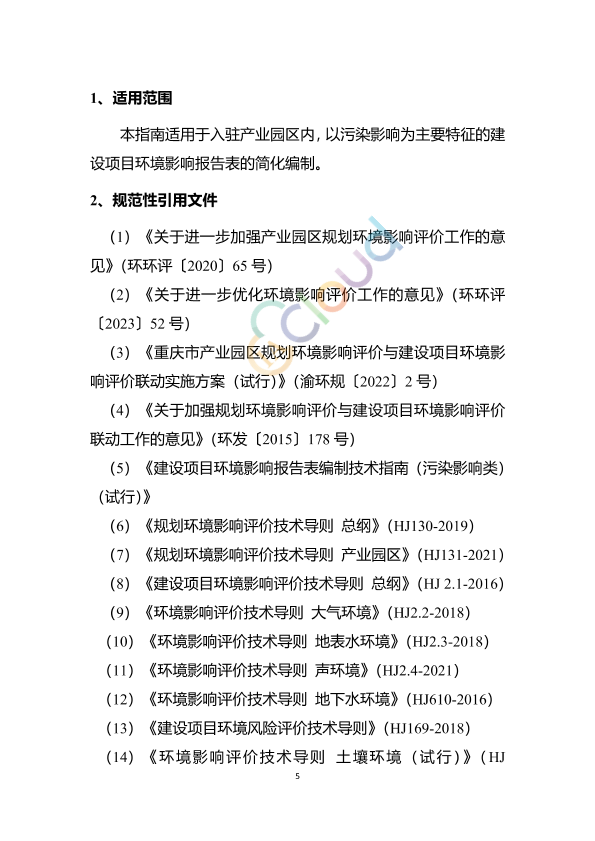 本指南适用于入驻产业园区内,以污染影响为主要特征的建设项目环境影响报告表的简化编制。