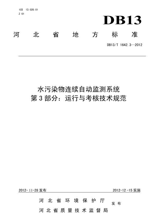 ——《DB13/T 1642.3-2012 水污染物连续自动监测系统 第3部分:运行与考核技术规范》。