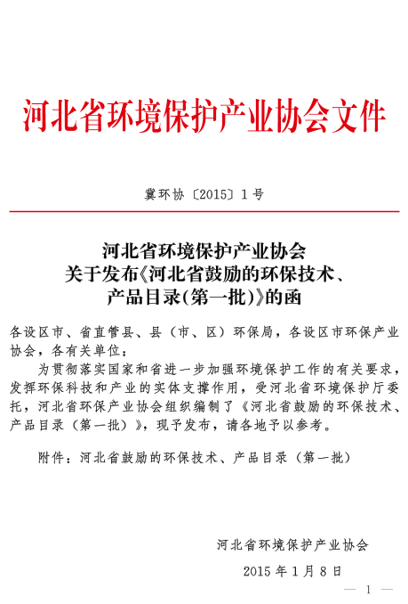 托,河北省环保产业协会组织编制了《河北省鼓励的环保技术、