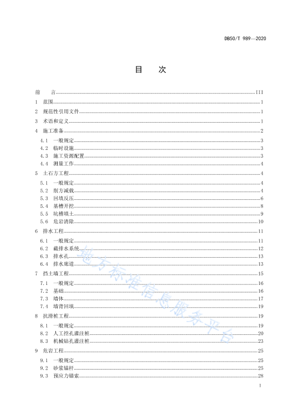 本标准按GB/T 1. 1-2009给出的规则进行起草。 本标准由重庆市规划和自然资源局提出并归口。 本标准起草单位:重庆市地质灾害防治中心、重庆南江建设工程有限公司、重庆科技学院、重庆大学、重庆交通大学、重庆工程职业技术学院、重庆市二零五勘测设计有限公司、重庆市基础工程有限公司、重庆607勘察实业总公司、重庆市羚农建设集团有限公司、四川省峨眉山四零三建设工程公司、重庆市爆破工程建设有限责任公司、林同錟国际工程咨询(中国)有限公司。 本标准主要起草人:陈绍清、何安弟、张涛、王东、代永生、褚庆国、蔡颖、罗云、马飞、李伟、王峰、徐杨、欧阳武、孟祥栋、王其洪、李进、舒洪平、叶四桥、靳晓光、赵鹏才、陈欢、李峰、吴燕苹、谭磊、林尤跃、李锦兰、粟欣。