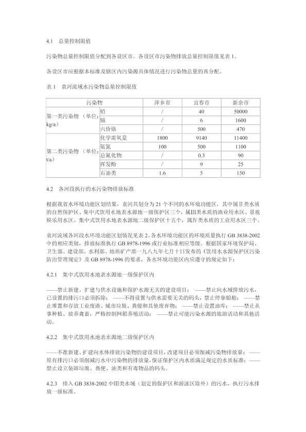 本标准规定了袁河流域内各设区市辖区河段的八种主要水污染物排放总量控制限值、袁河流域各河段执行的环境质量标准、水污染物排放标准和交接断面位置。 本标准适用于江西省袁河流域水环境管理(包括现有排放水污染物单位的排放管理,建设项目的环境影响评价,排污许可证制度,建设项目的环境保护设施设计、竣工验收及其投产后的排放管理)。