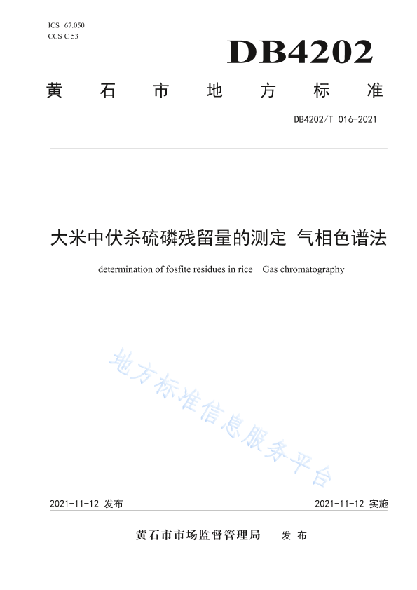 本文件规定了大米中伏杀硫磷残留量的气相色谱测定方法。 本文件适用于大米中伏杀硫磷残留量的测定。
