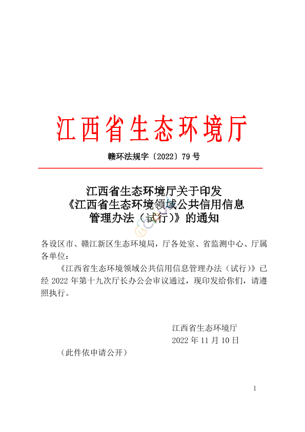 赣环法规字〔2022〕79号关于印发《江西省生态环境领域公共信用信息管理办法(试行)》的通知.pdf