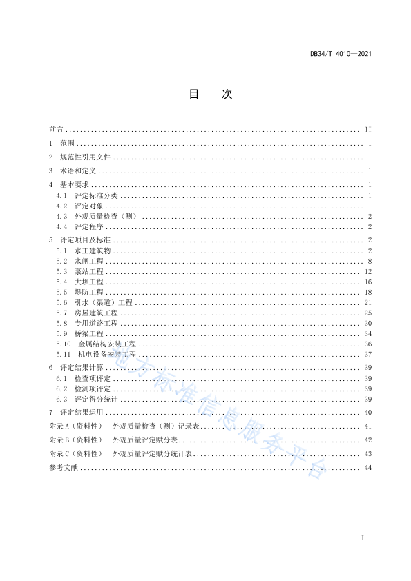 本文件确立了水利工程外观质量评定的基本要求,并规定了评定项目及标准、评定结果计算和评定结果运用。 本文件适用于大、中型水利工程的外观质量评定,小型水利工程可参照执行。