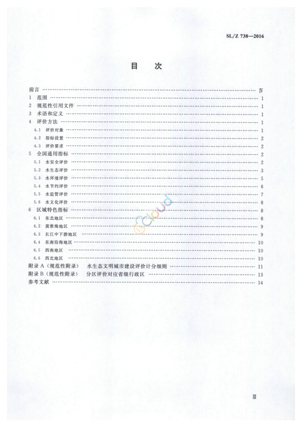 根据水利技术标准制修订计划安排,按照GBj T 1. 1- 2009 ((标准化工作导则第1 部分:标准 的结构和编写》的要求,编制本标准。 本标准共6 章和2 个附录,主要内容包括评价方法、全国通用指标以及区域特色指标等。 本标准为全文推荐。 本标准批准部门: 中华人民共和国水利部 本标准主持机构: 水利部水资源司 本标准解释单位: 水利部水资源司 本标准主编单位: 中国水利水电科学研究院 本标准参编单位: 水利部综合事业局 本标准出版、发行单位:中国水利水电出版社 本标准主要起草人:王建华胡鹏詹卫华何凡李海红肖伟华司毅兵陈吉虎刘韶杰 本标准审查会议技术负责人: 高而坤 本标准体例格式审查人: 于爱华 本标准在执行过程中,请各单位注意总结经验,积累资料,随时将有关意见和建议反馈给水利部国际合作与科技司(通信地址:北京市西城区白广路二条2 号;邮政编码: 100053; 电话: 010- 63204565; 电子邮箱: bzh@mwr. gov. cn) ,以供今后修订时参考。