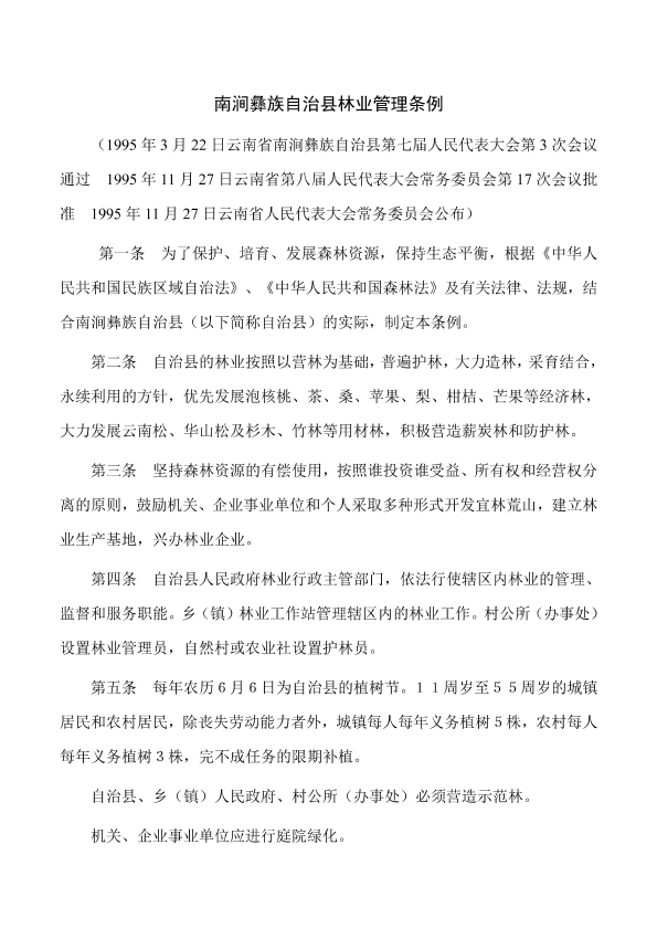 (1995年3月22日云南省南涧彝族自治县第七届人民代表大会第3次会议通过 1995年11月27日云南省第八届人民代表大会常务委员会第17次会议批准 1995年11月27日云南省人民代表大会常务委员会公布)