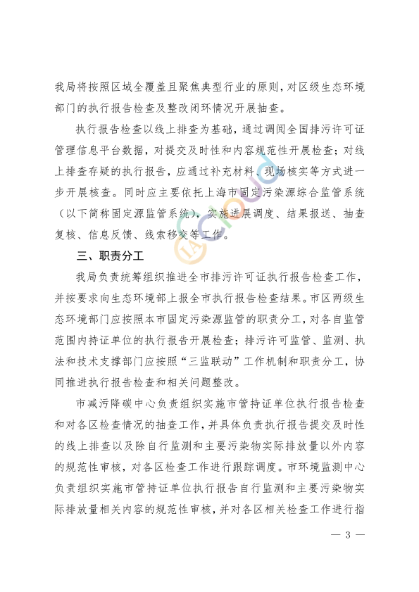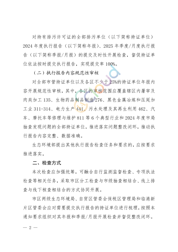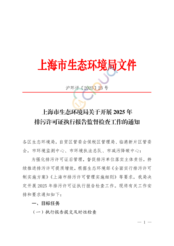 各区生态环境局,自贸区管委会保税区管理局、临港新片区管委会,市环境监测中心、市环境执法总队、市减污降碳中心: 为强化排污许可证后管理,督促排污单位落实主体责任,持续推进排污许可提质增效,根据生态环境部《全面实行排污许可制实施方案》《上海市排污许可管理实施细则》等要求,我局决定开展2025年排污许可证执行报告检查工作。现将有关工作安排和要求通知如下: