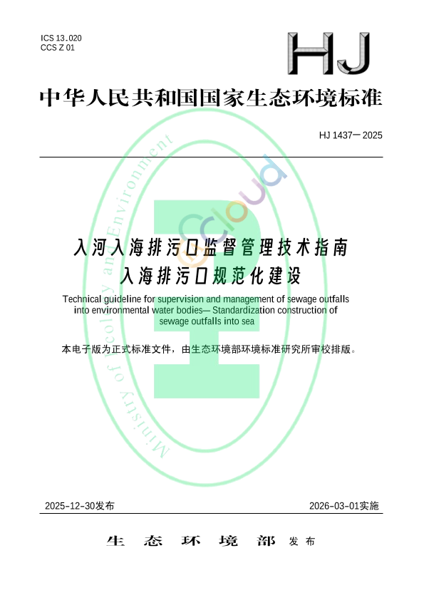 本标准规定了入海排污口规范化建设的要求,包括入海排污口口门、排污通道、监测采样点、标识牌、监控及监测系统、检查井及档案等规范化建设要求。 本标准适用于指导入海排污口责任主体开展规范化建设。