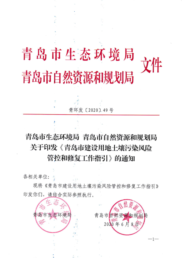 关于印发《青岛市建设用地土壤污染风险管控和修复工作指引》的通知 各相关单位: 现将《青岛市建设用地土壤污染风险管控和修复工作指引》印发你们,请结合实际参照执行。 青岛市生态环境局 青岛市自然资源和规划局 2020年6月8日