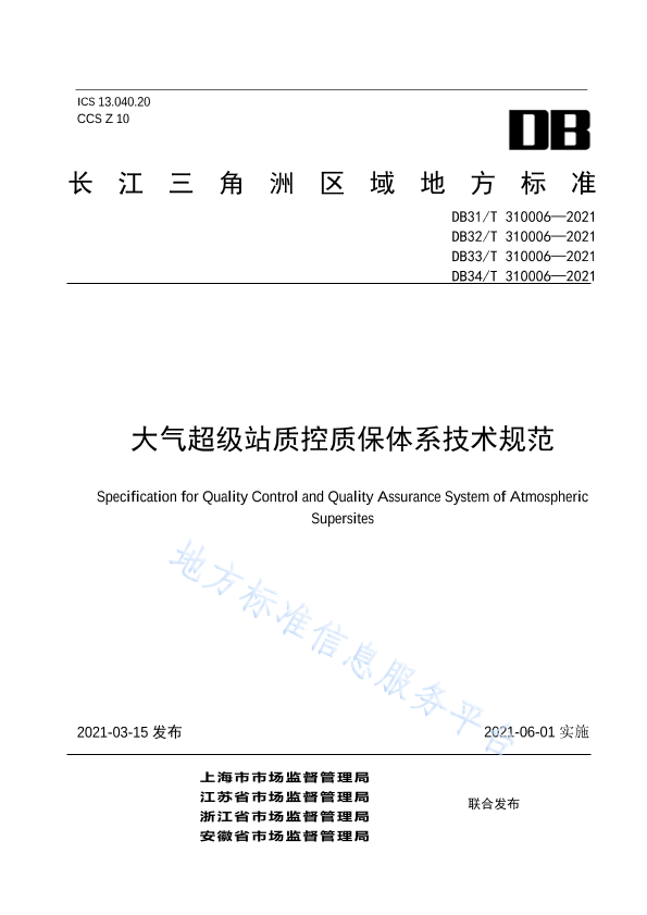 本文件规定了长三角区域大气超级站仪器配置和质控质保体系的技术要求。 本文件适用于长三角区域生态环境监测部门及其他社会环境监测机构采用连续自动监测系统开展大气颗粒物组分、挥发性有机物组分和颗粒物垂直分布监测时的质量控制与质量保证。