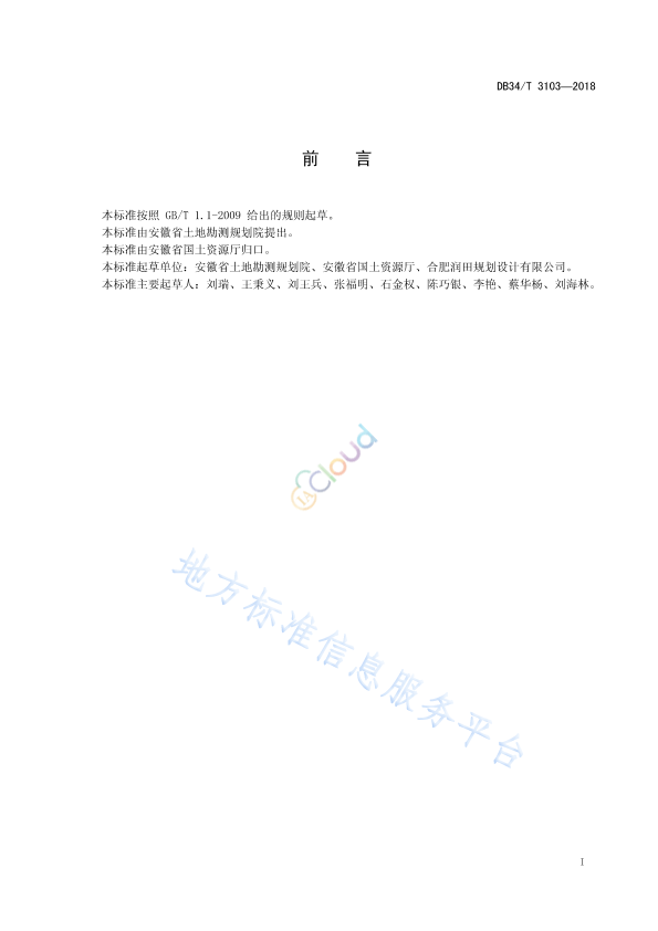 本标准按照 GB/T 1.1-2009 给出的规则起草。 本标准由安徽省土地勘测规划院提出。 本标准由安徽省国土资源厅归口。 本标准起草单位:安徽省土地勘测规划院、安徽省国土资源厅、合肥润田规划设计有限公司。 本标准主要起草人:刘瑞、王秉义、刘王兵、张福明、石金权、陈巧银、李艳、蔡华杨、刘海林。