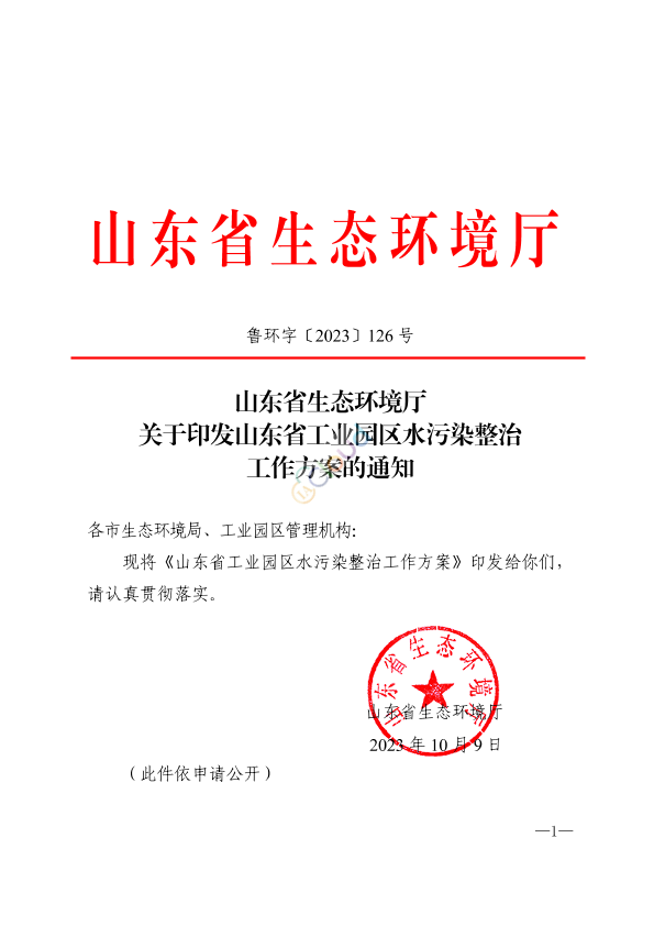各市生态环境局、工业园区管理机构: 现将《山东省工业园区水污染整治工作方案》印发给你们,请认真贯彻落实。 山东省生态环境厅 2023年10月9日