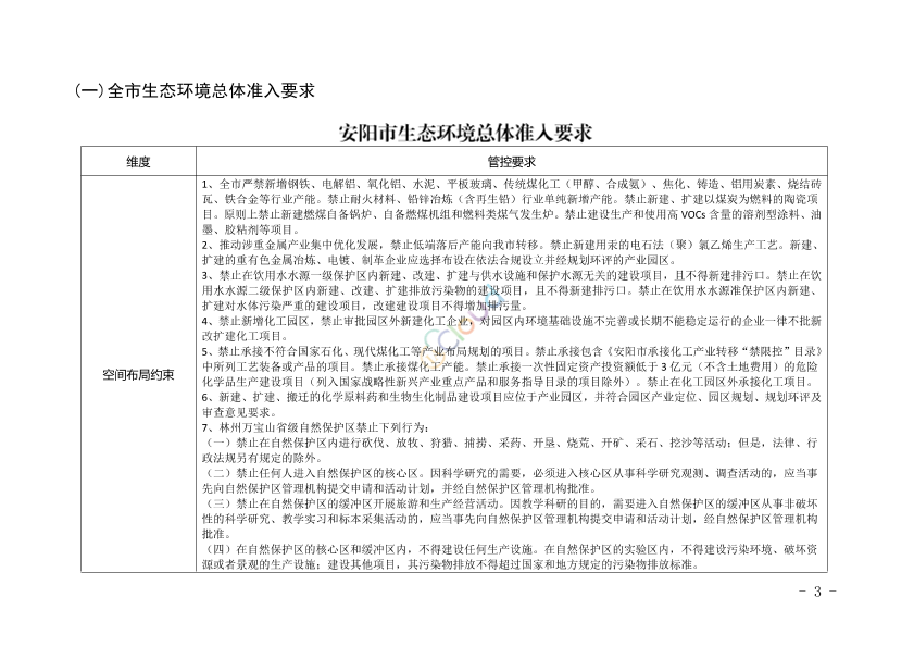 各县(市、区)人民政府,市人民政府各部门及有关单位: 近日收悉《滑县人民政府关于调整滑县产业集聚区“三线一单”空间布局约束的函》,滑县产业集聚区对主导产业进行了调整,设立了滑县煤化工产业园,且《滑县煤化工产业园总体规划(2021-2035年)环境影响报告书》于2022年12月21日通过了河南省生态环境厅审查(豫环函〔2022〕205号),现行的“三线一单”分区管控要求已不适用于滑县产业集聚区的产业定位及发展。经研究,我局同意来函中的修改意见,现决定将《安阳市“三线一单”生态环境分区管控准入清单(2023年版)》(安环函〔2023〕8号)修改如下: 1.将“滑县产业集聚区”管控单元(编码为:ZH41052620001)内“空间布局约束”中第1条“空间布局要求以产业集聚区规划环评批复文件为主,禁止新建不符合产业集聚区产业定位和规划环评要求的建设项目”修改为“空间布局要求以产业集聚区规划环评批复文件为主,禁止新建不符合产业集聚区产业定位和规划环评要求的建设项目。其中位于煤化工产业园的,应符合煤化工产业园产业定位、规划环评和规划环评批复文件的相关要求”。 2.将“滑县产业集聚区”管控单元(编码为:ZH41052620001)内“空间布局约束”中第2条“禁止新建、改建及扩建高排放、高污染项目,包括钢铁、有色、水泥、化工、平板玻璃、建筑陶瓷等工业项目”修改为“禁止新建、改建及扩建高排放、高污染项目,包括钢铁、有色、水泥、化工、平板玻璃、建筑陶瓷等工业项目(符合园区产业定位的项目除外)”。 经以上修改后的《安阳市“三线一单”生态环境分区管控准入清单(2023年版)》见附件。《安阳市生态环境局关于发布的函》(安环函〔2023〕8号)不再执行。 特此函告。 附:《安阳市“三线一单”生态环境分区管控准入清单(2023年版)》.doc 2023年4月26日