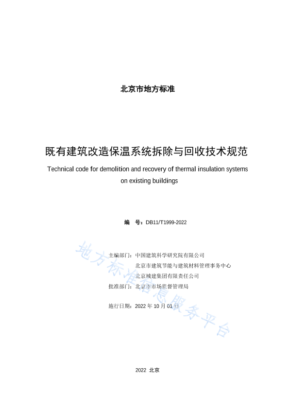 1.0.1为规范北京市 既有建筑改造保温系统拆除施工,保障施工安全和拆除材料综合利用,加强环境保护,诚少建筑碳排放,做到安全可靠,经济合理,结合北京市实际情况,制定本规范。 1.0.2本 规范适用于北京市既有居住建筑改造过程中保温系统拆除施工和材料的回收处理,公共建筑可参照执行。 1.0.3既有建筑改造保温系统拆除施工和材料回收循环利用,除应符合本规范外,尚应符合国家及北京市现行有关标准和规定。