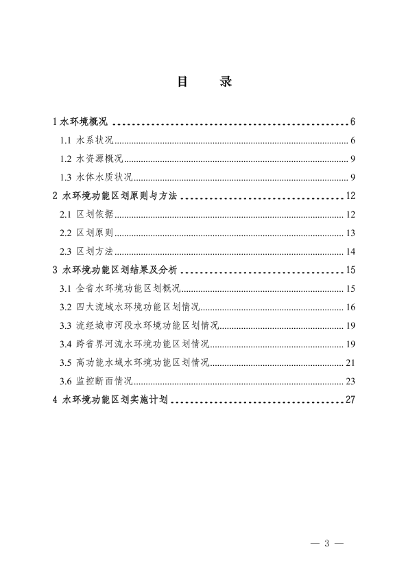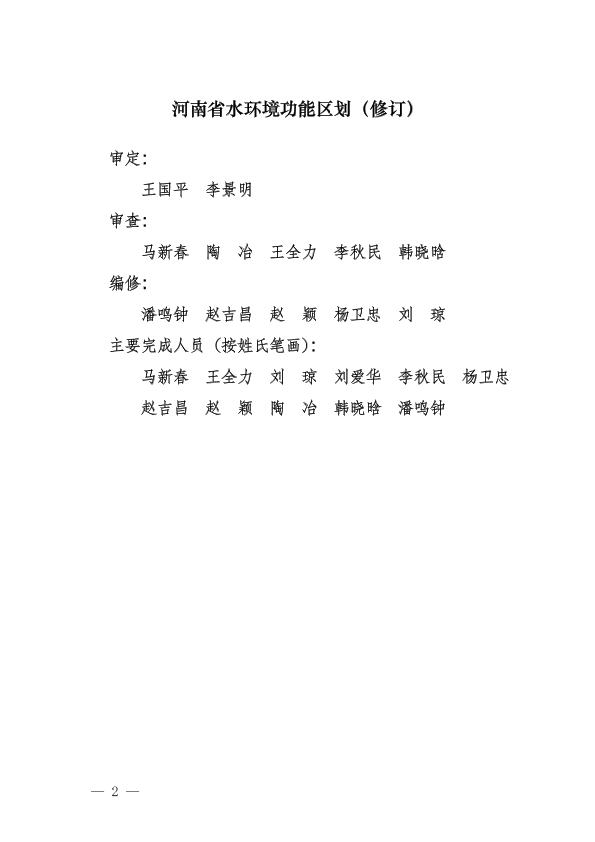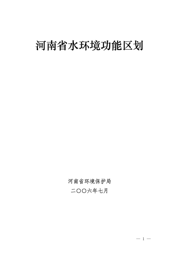 前 言 水环境功能区划是水环境保护的基础性工作,是执行环保法律、法规和水环境质量标准的重要依据,是实施水污染总量控制、 评价水环境质量以及水环境分级分类管理的基础。为贯彻落实《中华人民共和国环境保护法》和《中华人民共和国水环境质量标准》,切实加强水污染防治和水环境管理工作,省政府于1992 年6 月下发了《关于开展我省地面水环境功能区划分工作问题的批复》(豫政〔1992〕15 号),成立了领导小组和工作班子,指导、督促各地开展地面水环境功能区划工作,截至1995 年4 月,18 个省辖市均完成了本辖区水环境功能区划工作,并报经当地政府批准实施。 各地水环境功能区划实施10 年来,对加强水污染防治、保护水环境、合理开发和利用水资源起到了重要作用。然而,随着我省经济社会的快速发展和水环境保护工作的不断深入开展,一些水环境功能区的范围和功能类别需要调整,部分河流的监控断面需要改变,原有的水环境功能区划亟待做合理的调整和优化。 为了加强全省水环境统一规划、评价、管理和考核,做好跨区域、流域的水环境监控和管理工作,省环保局会同省水利厅,在各地水环境功能区划调整、充实和提高的基础上,编制完成了《河南省水环境功能区划》。 本水环境功能区划分两个阶段实施,第一阶段(2005 年~2010 年):全省饮用水源保护区、河流源头、自然保护区、大中型水库等高功能水域,必须稳定达到水环境功能区划水质目标,确保人民群众饮水安全;全省49 个重点水环境功能区水质目标逐步达到省政府水环境责任目标的要求。第二阶段(2010 年~2015 年):区划181 个水环境功能区全部达到区划结果划定的水质目标。