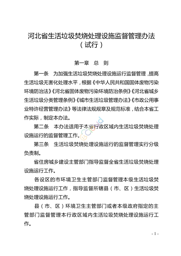 各市(含定州、辛集市)住房和城乡建设局(建设局、住房保障和房产管理局)、城市管理综合行政执法局,石家庄市园林局,雄安新区管委会规划建设局、综合执法局: 《河北省生活垃圾焚烧处理设施监督管理办法(试行)》已经2022年第2次厅务会议审议通过,现予印发,自2022年9月26日起施行,请认真抓好贯彻落实。 附件:河北省生活垃圾焚烧处理设施监督管理办法(试行) 河北省住房和城乡建设厅 2022年8月26日