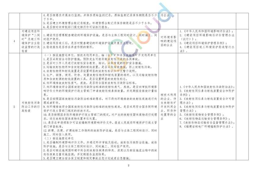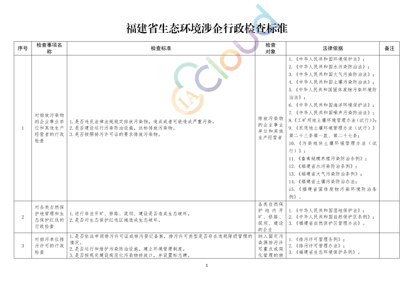 福建省生态环境涉企行政检查标准