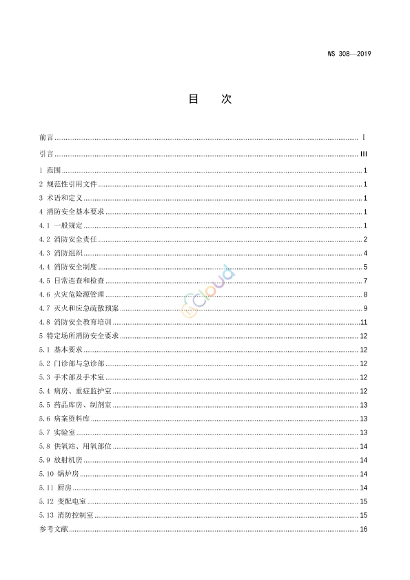 本标准规定了医疗机构消防安全基本要求和内部特定场所的消防安全要求。 本标准适用于各类医疗机构的消防安全管理。