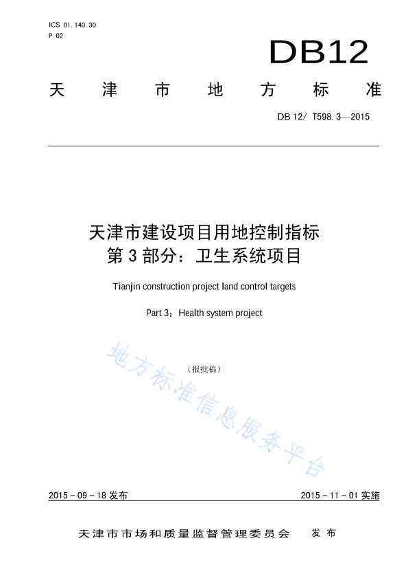 DB12/T 598- -2015 的本部分规定了天津市卫生系统工程项目在土地利用上的控制标准。