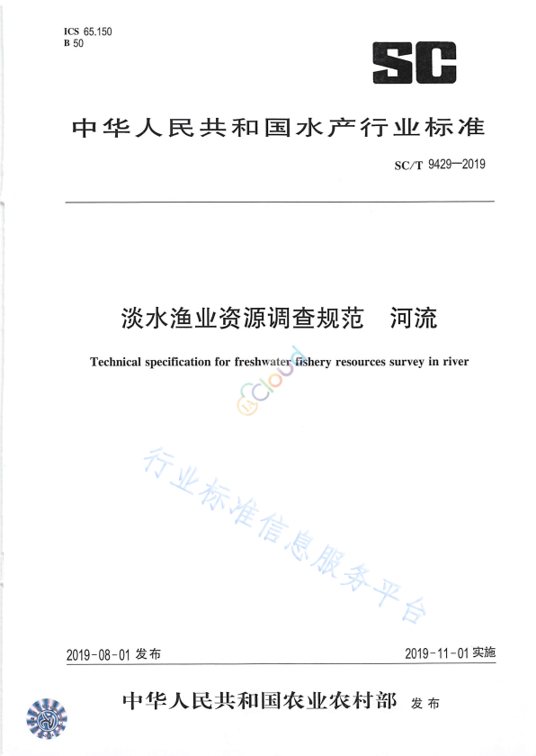 本标准规定了河流渔业资源的调查方案设计、调查内容和要求、渔业资源量估算的基本要求和方法。 本标准适用于河流渔业生物资源的调查与评估。