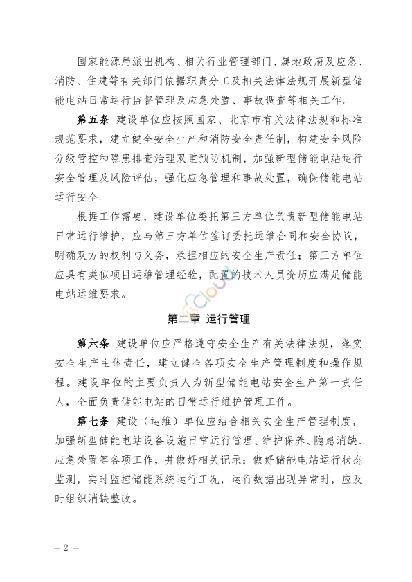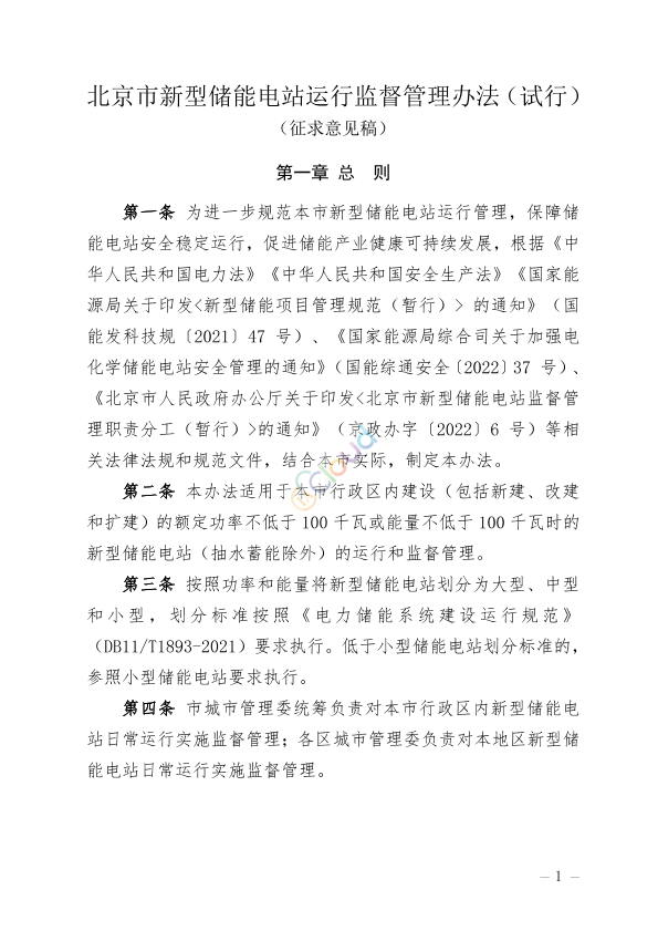 为进一步规范本市新型储能电站运行监督管理,保障储能电站安全稳定运行,促进储能产业健康可持续发展,根据国家及本市相关管理规定,市城市管理委会同有关部门研究制定了《北京市新型储能电站运行监督管理办法(试行)》。现向社会公开征求意见,欢迎社会各界提出意见建议。 公开征集意见时间为:2022年10月25日至10月31日。 意见反馈渠道如下: 1.电子邮箱:fangyansheng@csglw.beijing.gov.cn。 2.通讯地址:北京市西城区三里河北街甲三号北京市城市管理委员会电力煤炭管理处(请在信封上注明“意见征集”字样) 3.电话:010—68539047 4.传真:010—68512344 5.登录北京市人民政府网站(http://www.beijing.gov.cn),在“政民互动”版块下的“政策性文件意见征集”专栏中提出意见。 北京市城市管理委员会 2022年10月25日